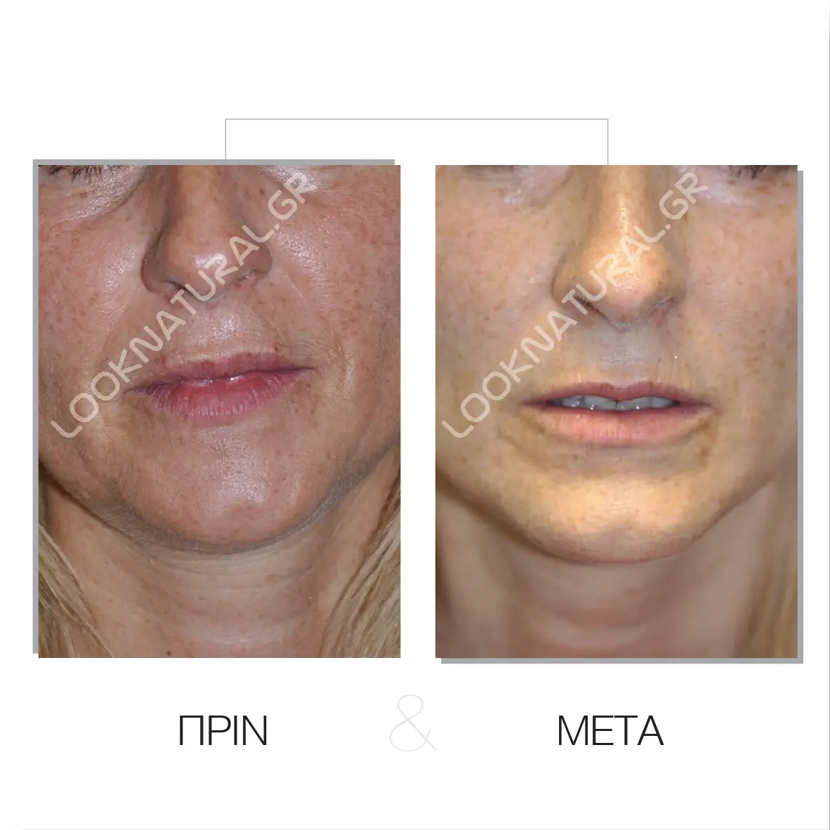 - Στο σαγόνι και στη γραμμή της γνάθου.